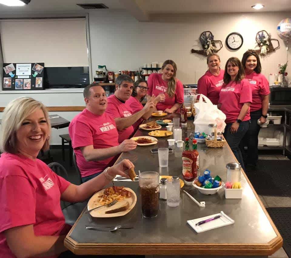 Several people enjoying a meal at the Women's United Breakfast For Dinner event.